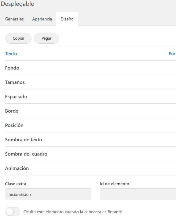 2- En ([IMK] Header) en el botón de iniciar sesión de color verde, le damos editar y añadimos la siguiente clase en la pestaña diseño: