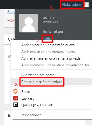 Donde pone URL DE CERRAR SESIÓN, introduciremos la url de log out de nuestra web, para saber cual és copiamos el link de la siguiente forma.