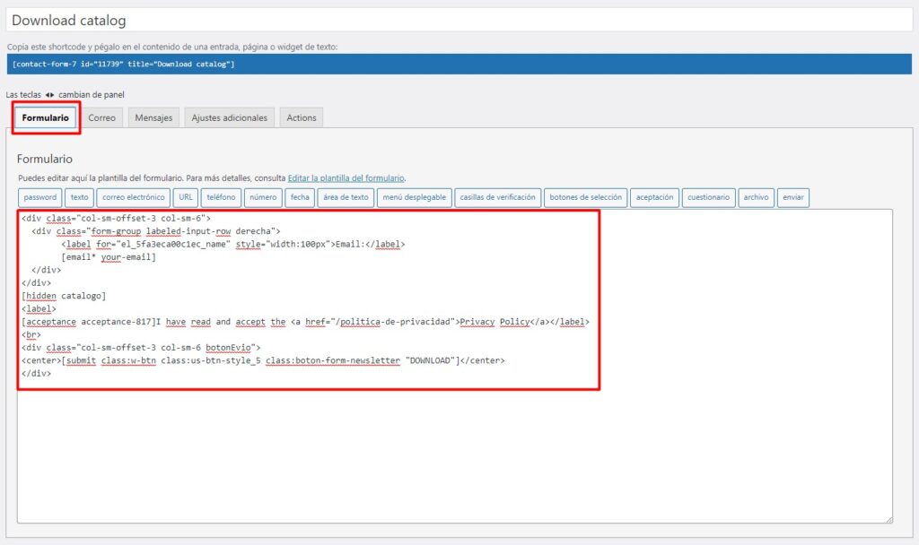 - Creamos un formulario nuevo con el nombre «Descarga catálogo».